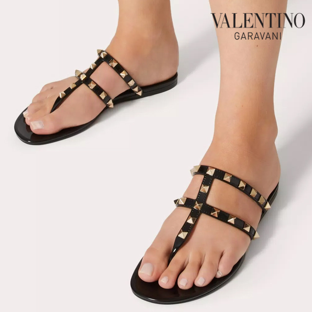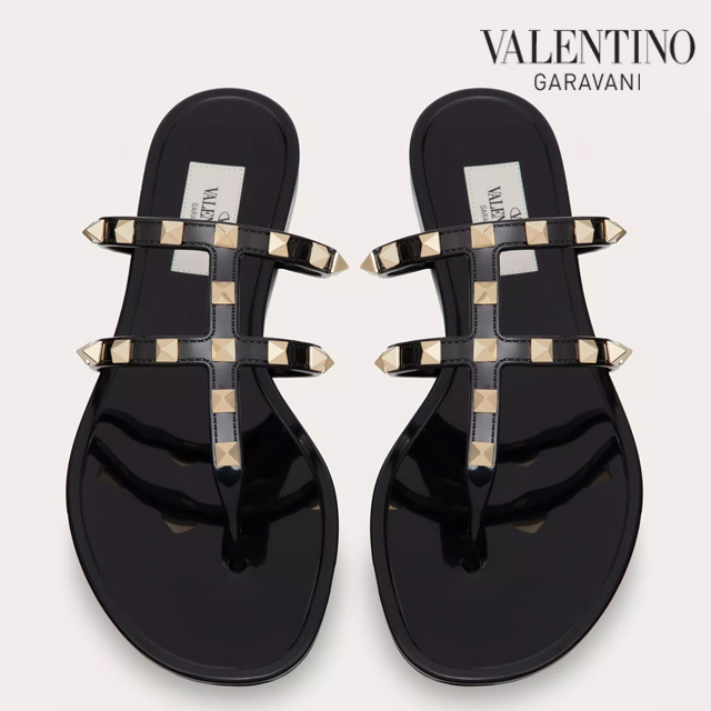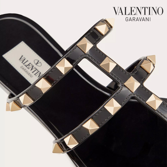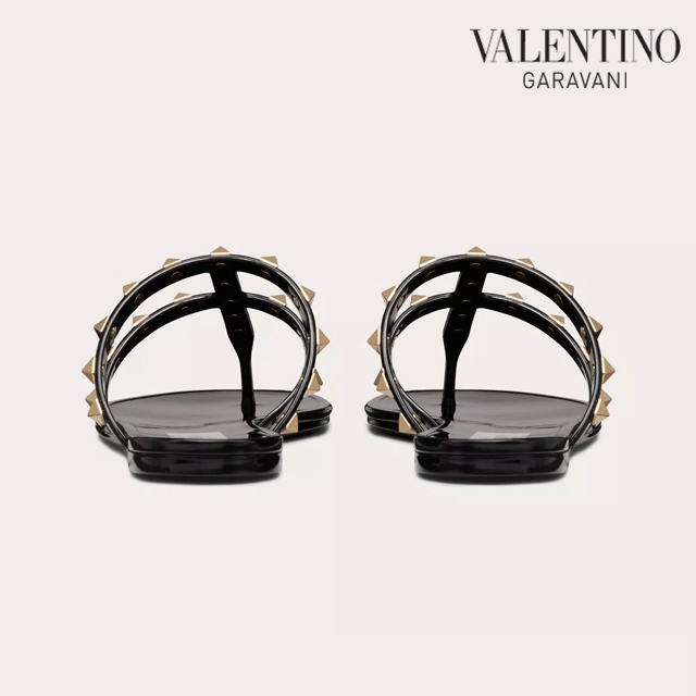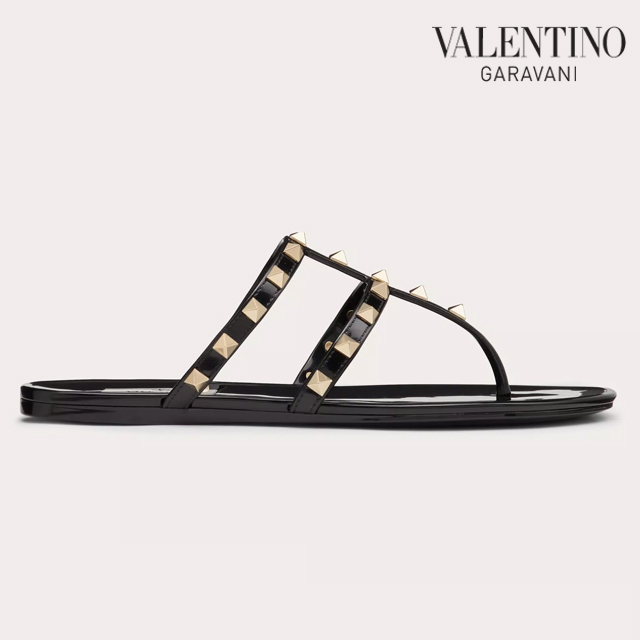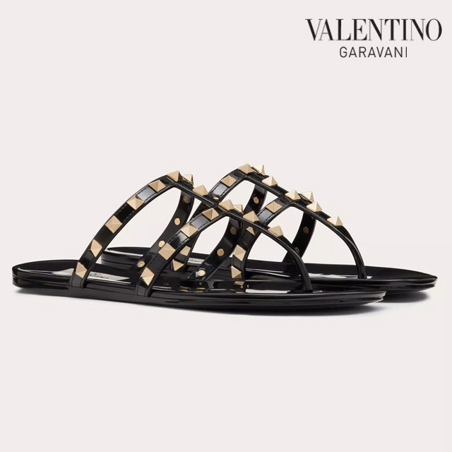 발렌티노 락스터드 고무 플랫 샌들 블랙 4W2S0T84 PVS 0NO