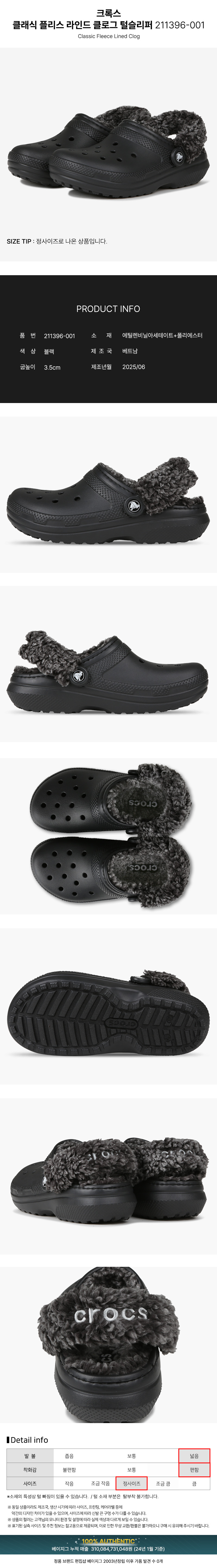 (현대Hmall)크록스 클래식 플리스 라인드 클로그 겨울 방한 털슬리퍼 211396-001