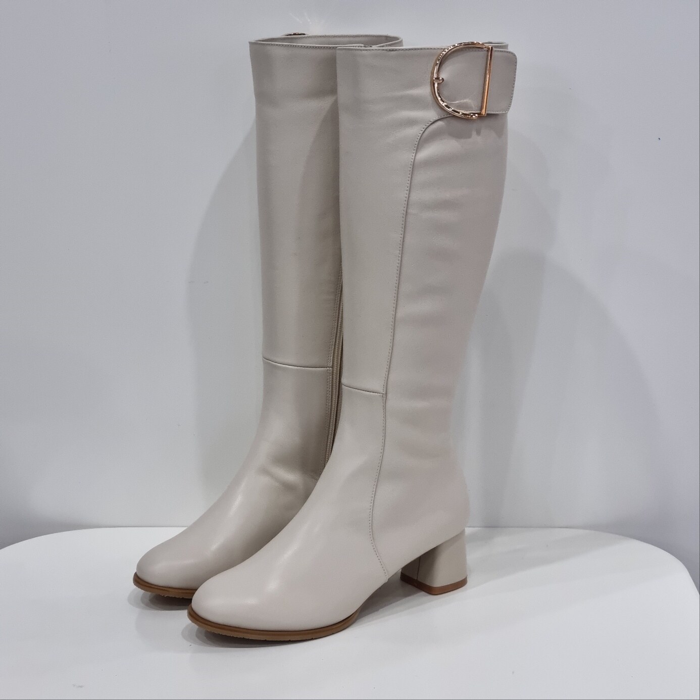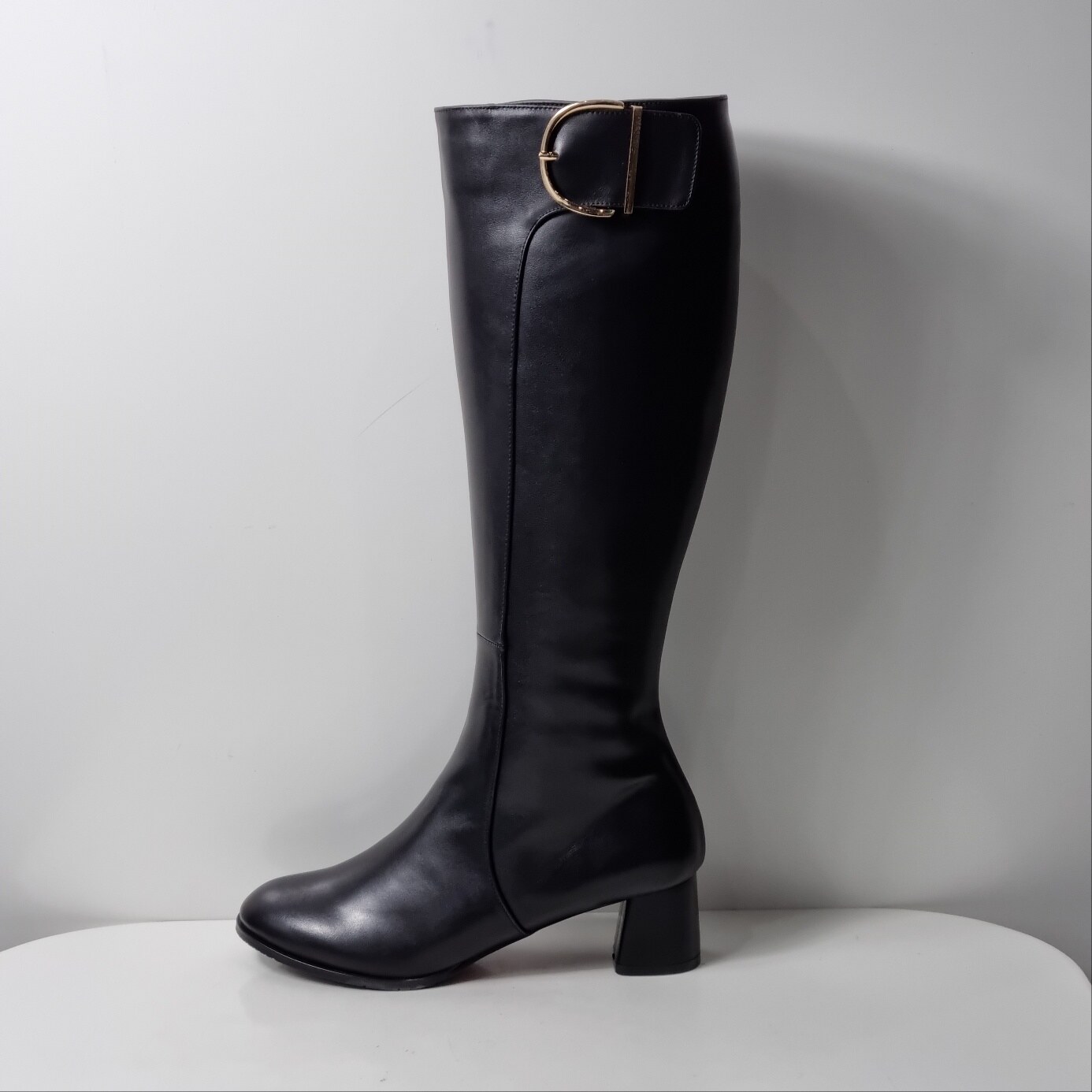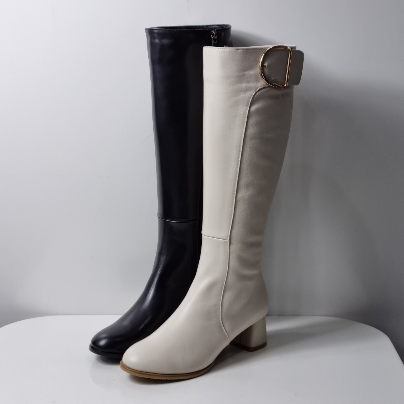 부드러운 소가죽에 골드장식이 돋보이는 고급스러운 롱부츠를 소개합니다.