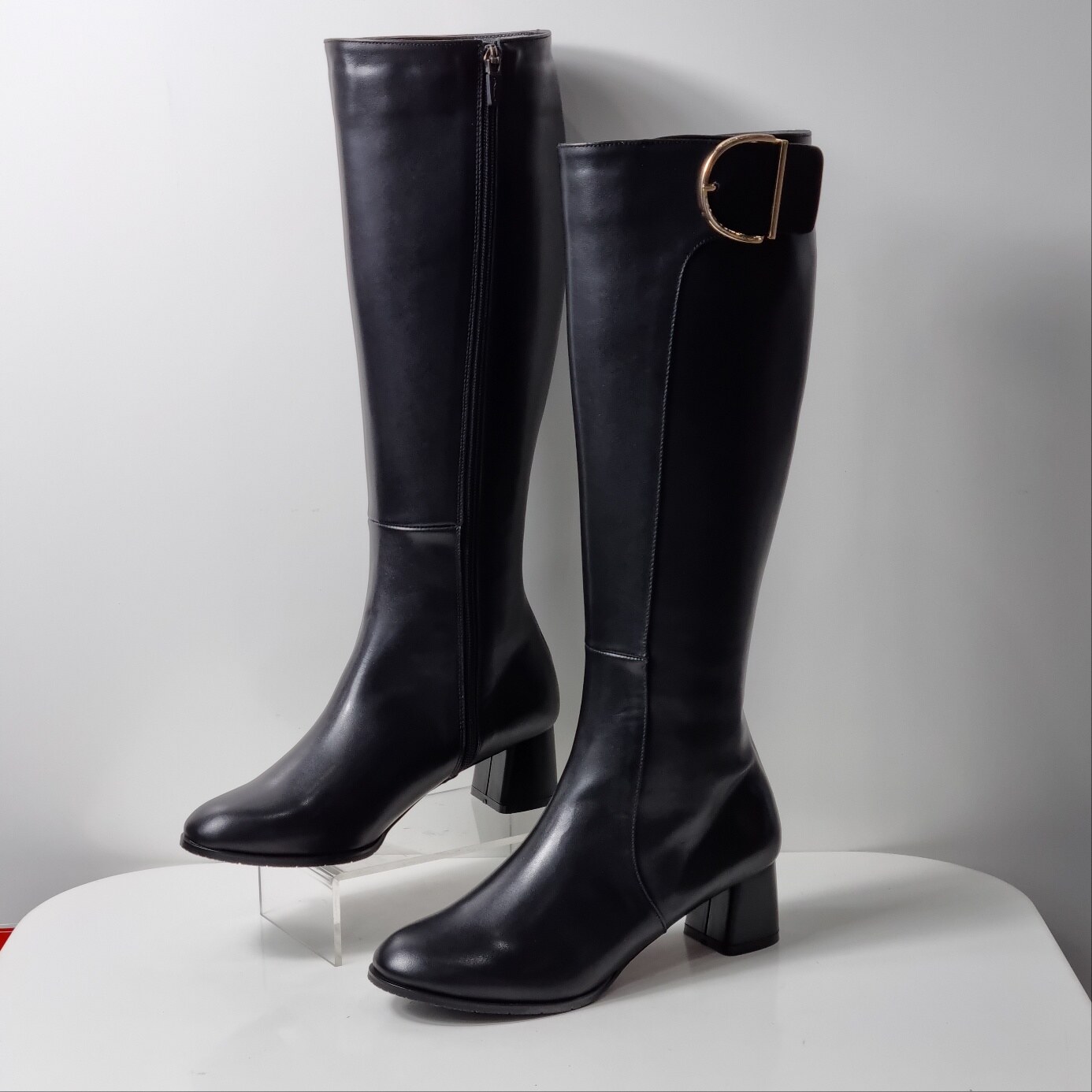부드러운 소가죽에 골드장식이 돋보이는 고급스러운 롱부츠를 소개합니다.