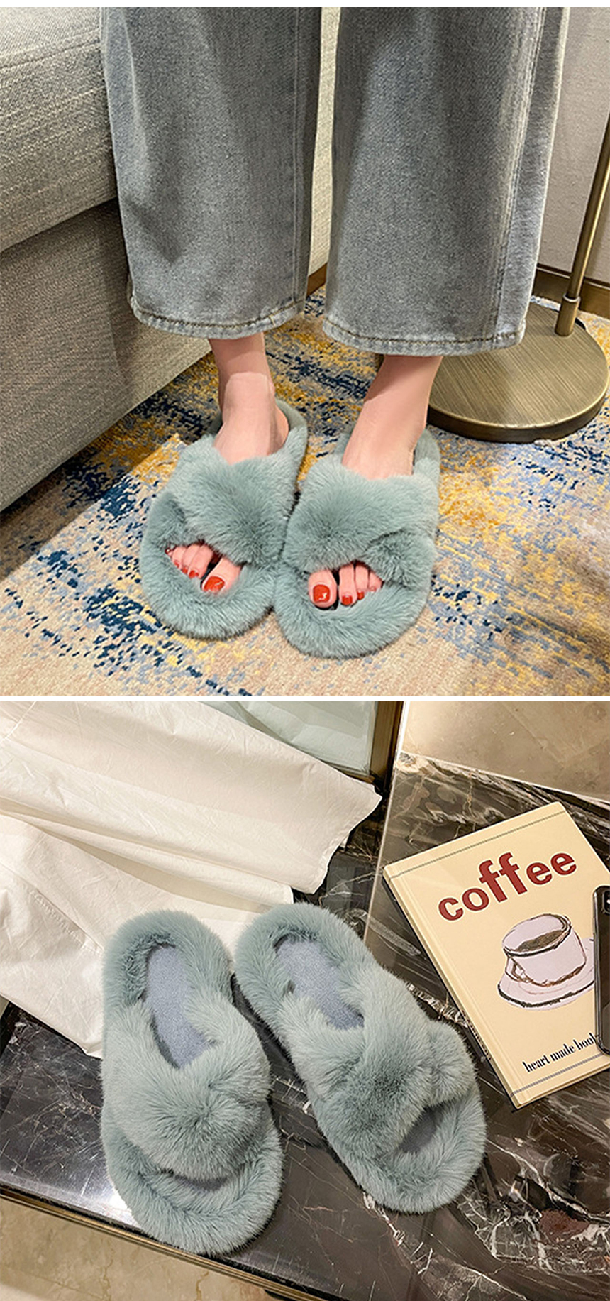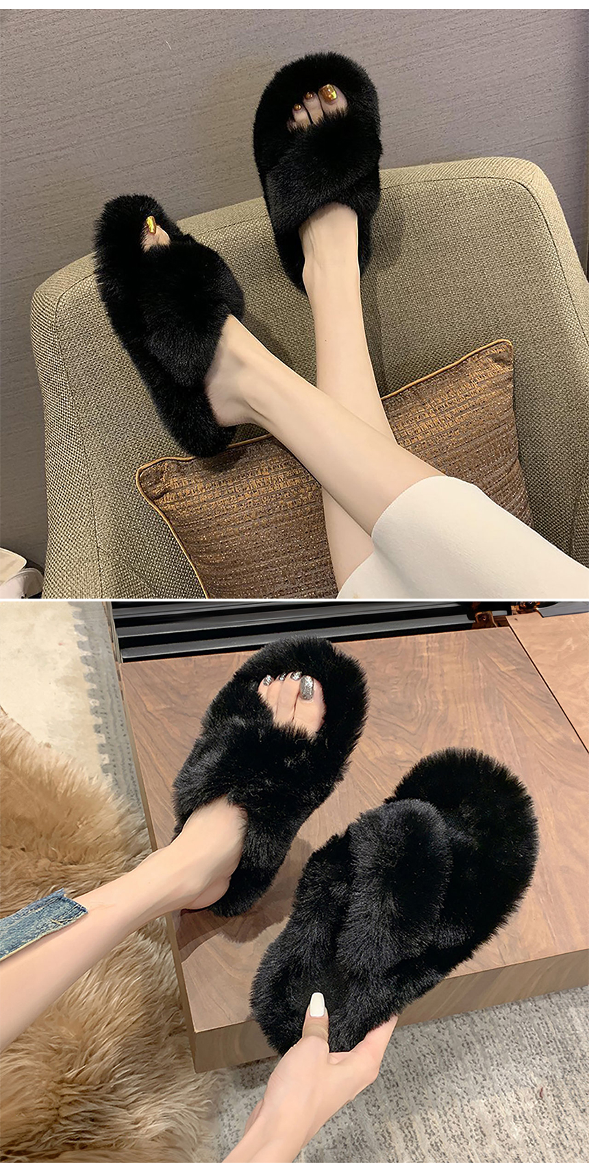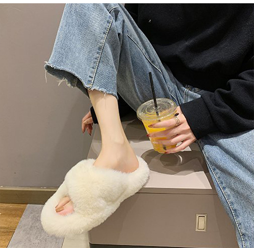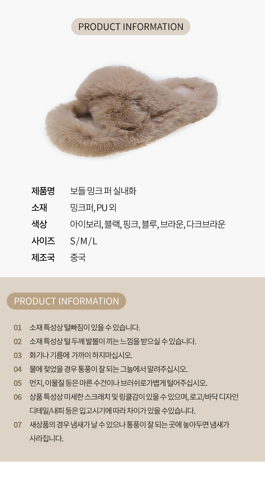 겨울 밍크 퍼 실내화 굽2cm 털 슬리퍼 사무실 병원 논슬립 거실화 네일샵 통굽