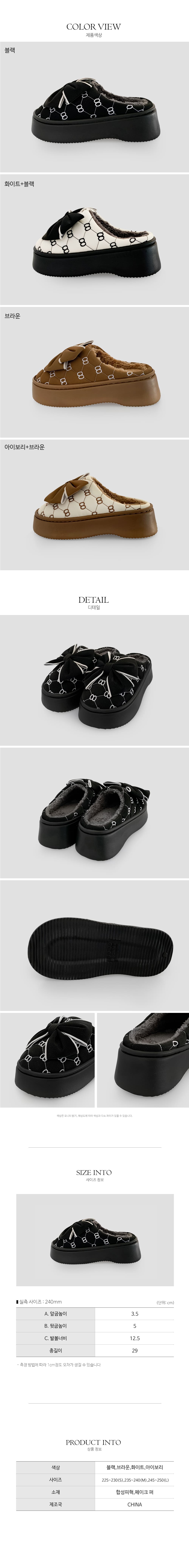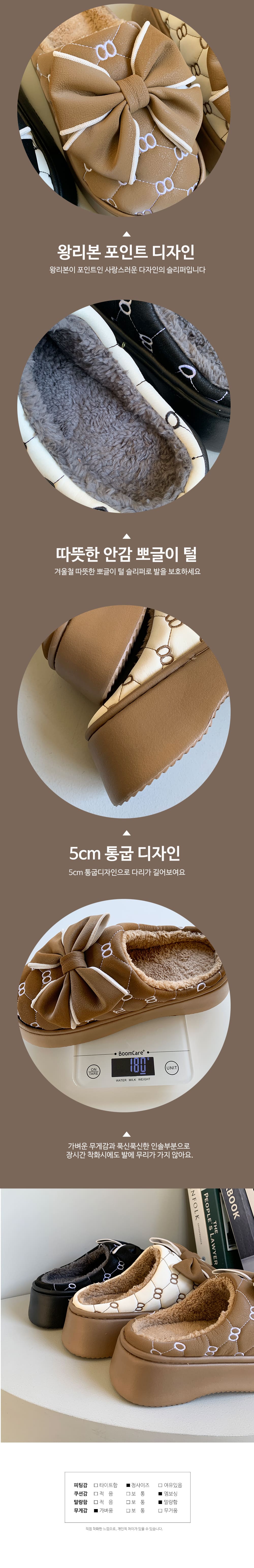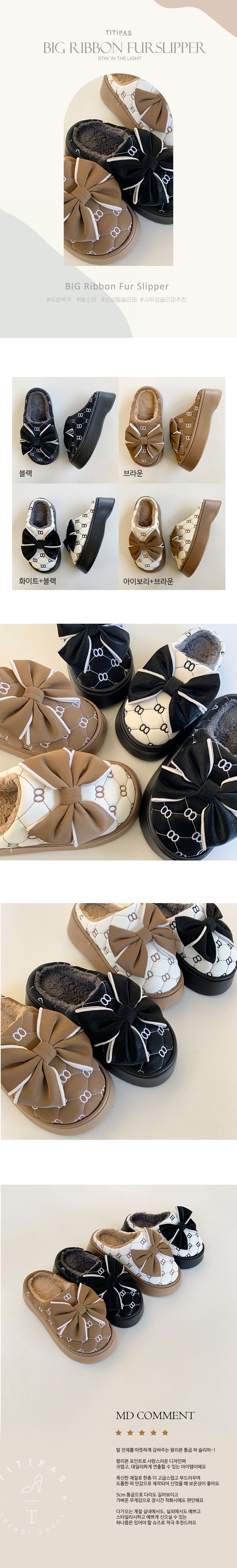 오늘발송 몬드 왕리본 뽀글이 키높이 퍼 털 슬리퍼