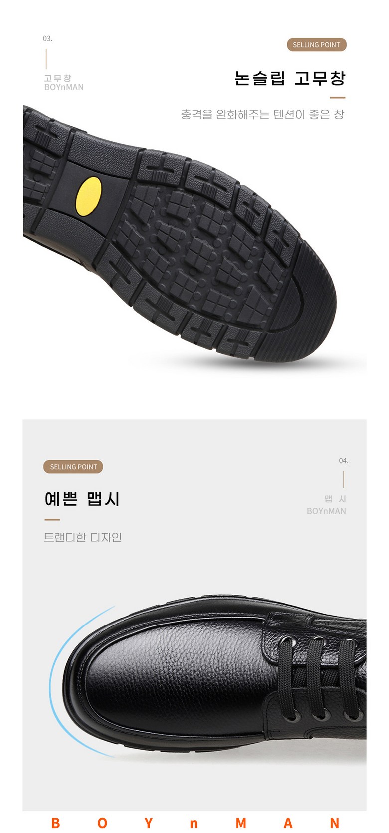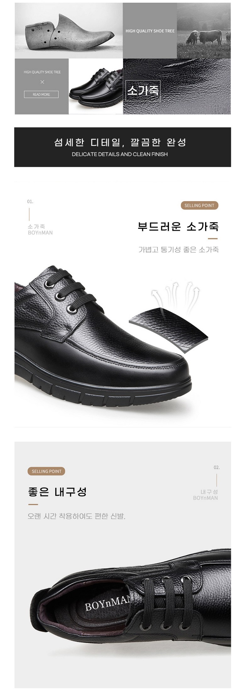 보이앤맨 소가죽 남자 편한구두 남성 정장 신사화 신발 캐주얼단화 슈즈 (사이즈 240/245/250/255/260/265/