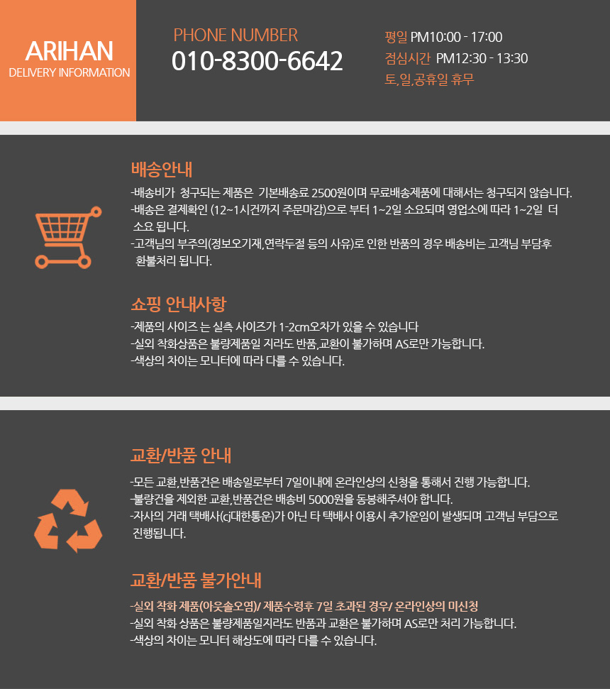 특이 사항  배송, 변경, 반품 환불에 대한 문의는 위 연락처로 문의 주세요.