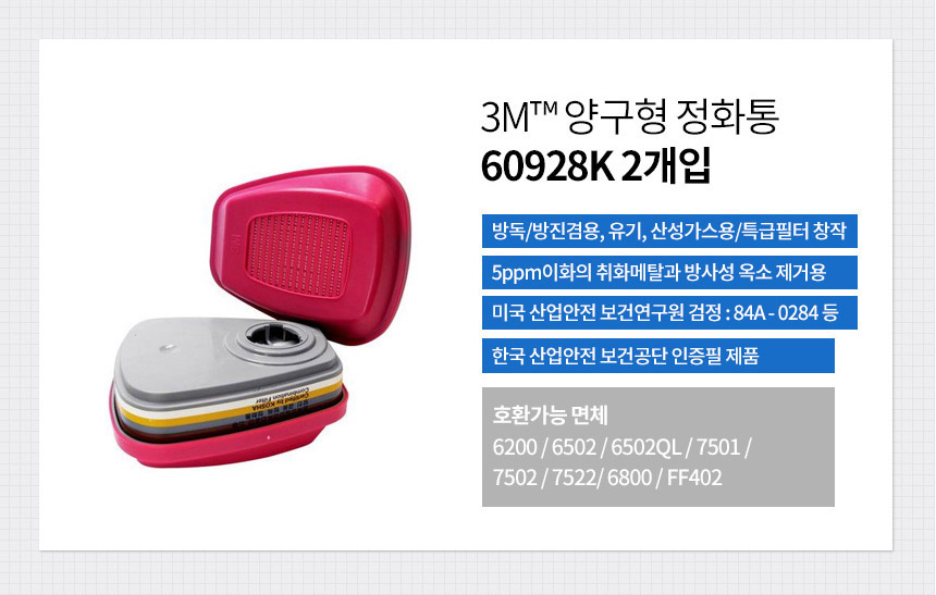 3M 마스크 필터 정화통 방독/방진 겸용 필터 60928K (2개입)