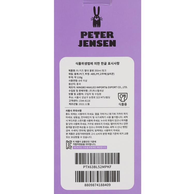 보리보리/피터젠슨 PJ 키즈 빨대 물병 350ml 핑크 PTX63BL52M_PK