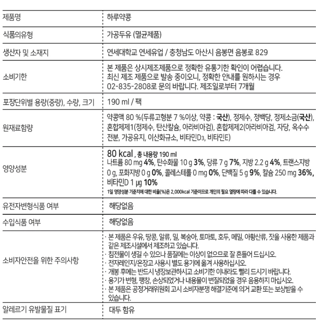하루약콩 두유 190ml 24팩/국산약콩 100%