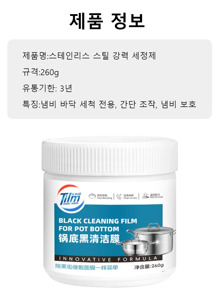 스테인리스 스틸 강력 제거제 주방 냄비 검은 때 가정용 강력 스케일 제거제?부식없음