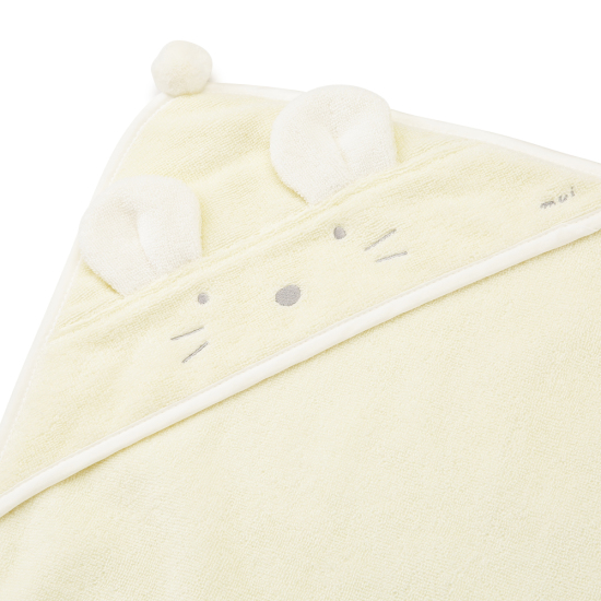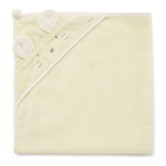 은은한 YELLOW color감에 심플한 로고 자수와 고깔부분의 폼폼이 포인트인 귀여운 쥐, '쥬쥬'모달목욕타올 입니다.