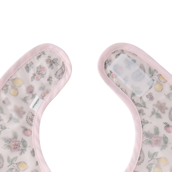 로맨틱한 '페이즐리 플라워' 패턴을 매치한 방수 이유식 턱받이입니다.