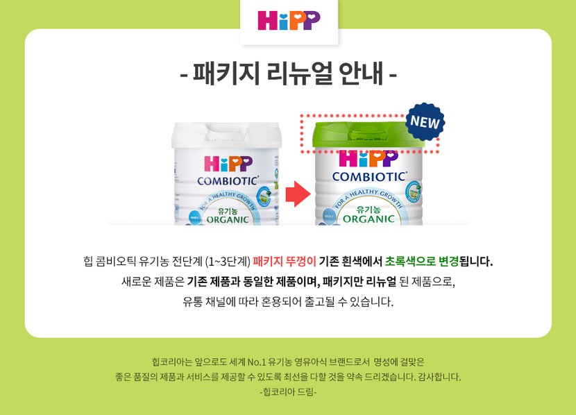 60년 이상의 유기농법 생산 경험과 260여가지 항목에 대한 꼼꼼한 품질 검사가 이루어지는 유기농 영유아식 브랜드 힙이 만든 유기농 분유를 만나보세요. 힙은 모유의 연구에서 얻은 최신 연구 결과를 적극적으로 반영하여 콤비오틱 유기농 제품을 만들고 있답니다. 힙 콤비오틱 유기농 1단계는 아기의 건강한 성장과 발달에 필요한 영양소가 들어있는 조제유입니다. 0개월~6개월 아기의 건강한 시작을 위한 힙 유기농 분유를 만나보세요.