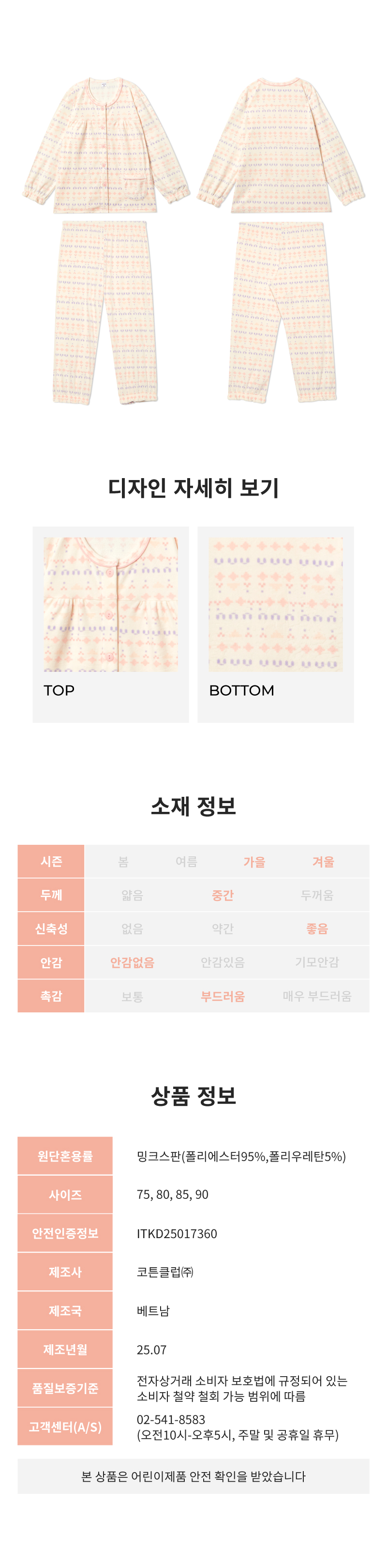 수아팜 여아 노르딕 극세사 수면 긴팔 파자마 세트
