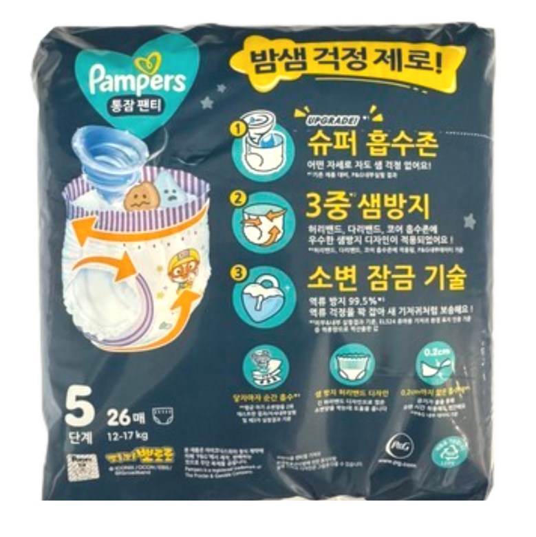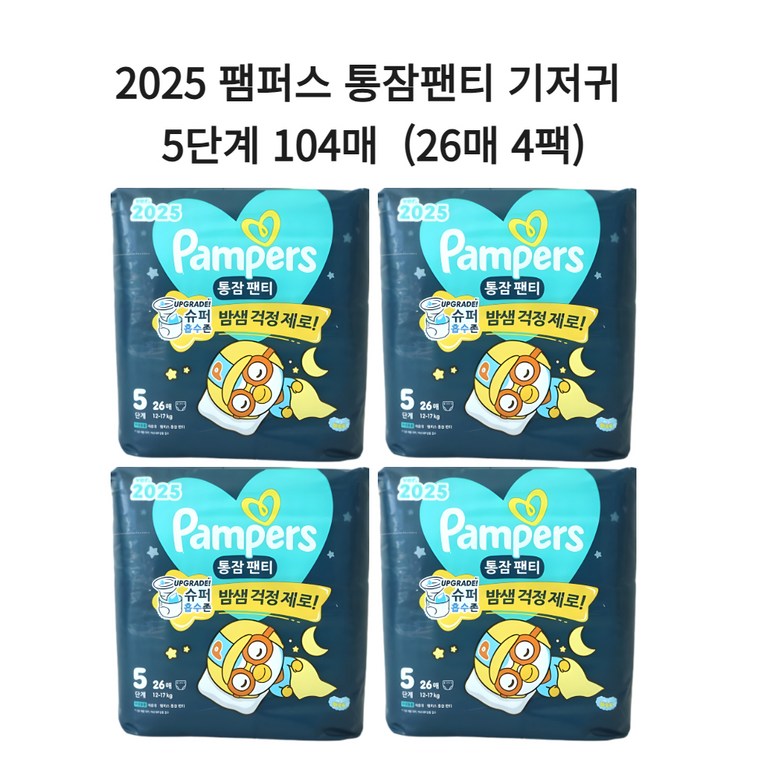 2025 팸퍼스 통잠팬티 기저귀 5단계 1박스(26매 4팩) 2025 팸퍼스 통잠팬티 기저귀 5단계 1박스(26매 4팩)