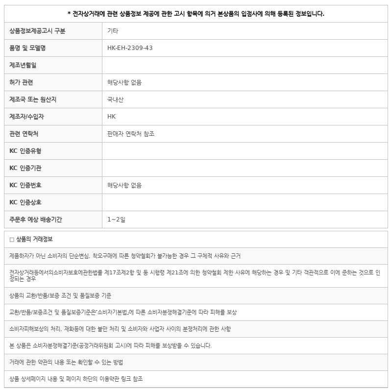반품/교환시 공급사에서 직접 수거접수하는 업체이며, 단순변심으로 인한 반품시 왕복배송비 6,000원 / 반품시 본 박스 훼손시 반품불가합니다.