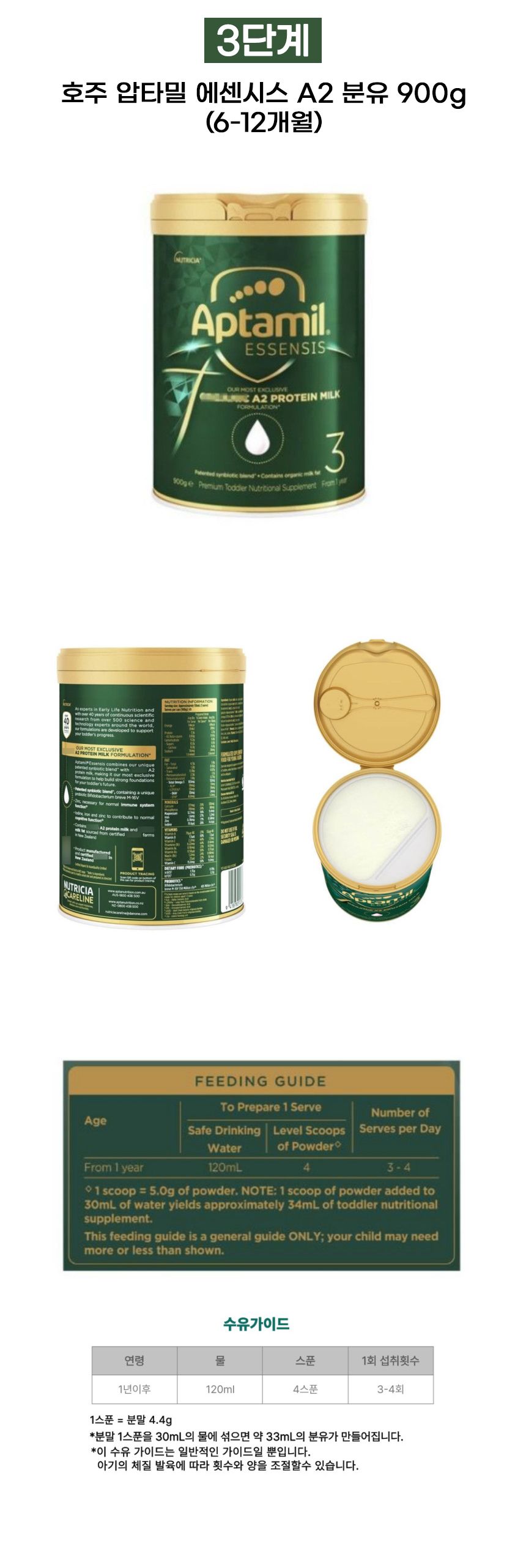 호주 압타밀 에센시스 900g 1단계 2단계 3단계 3통