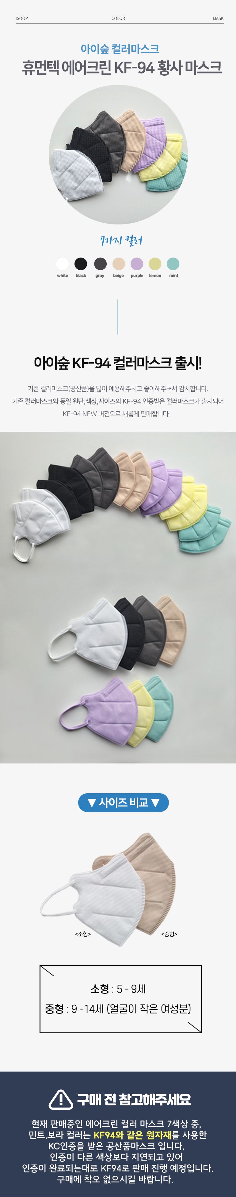 보리보리/아이숲 (유통기한 임박 특가) KF-94 에어크린 컬러마스크