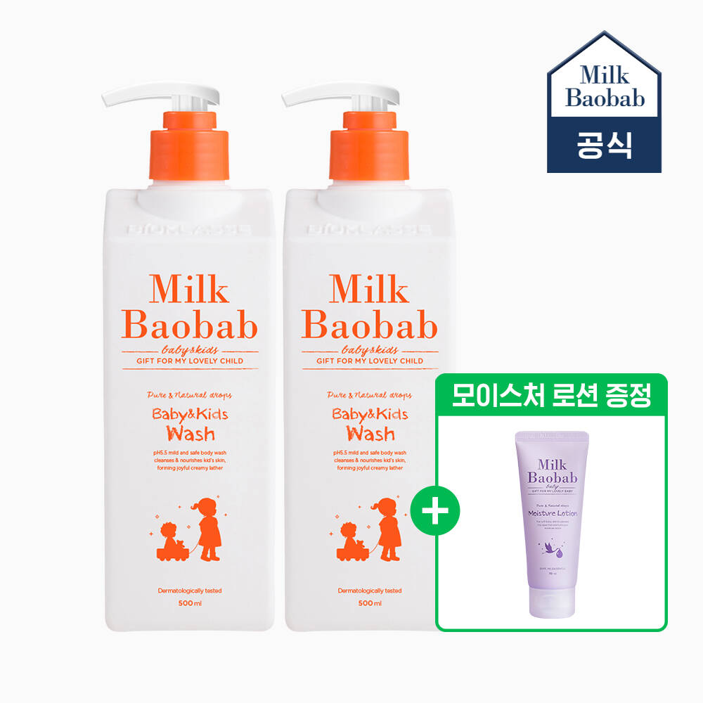 ∨ 온가족 안심사용 스킨케어 ∨ 한국/ 피부자극테스트 완료! Milk Baobab Baby&Kids W 500ml 설페이트, 피이지, 실리콘 無첨가 베이비&키즈 워시의 탄생