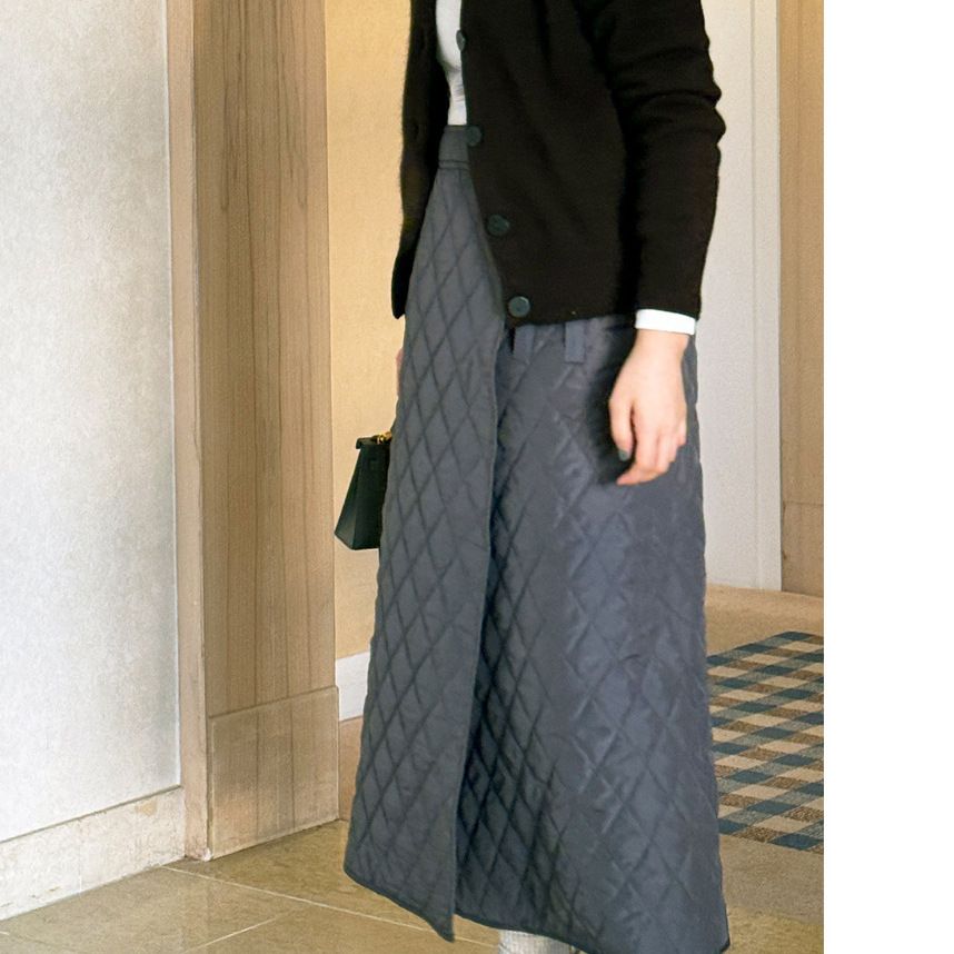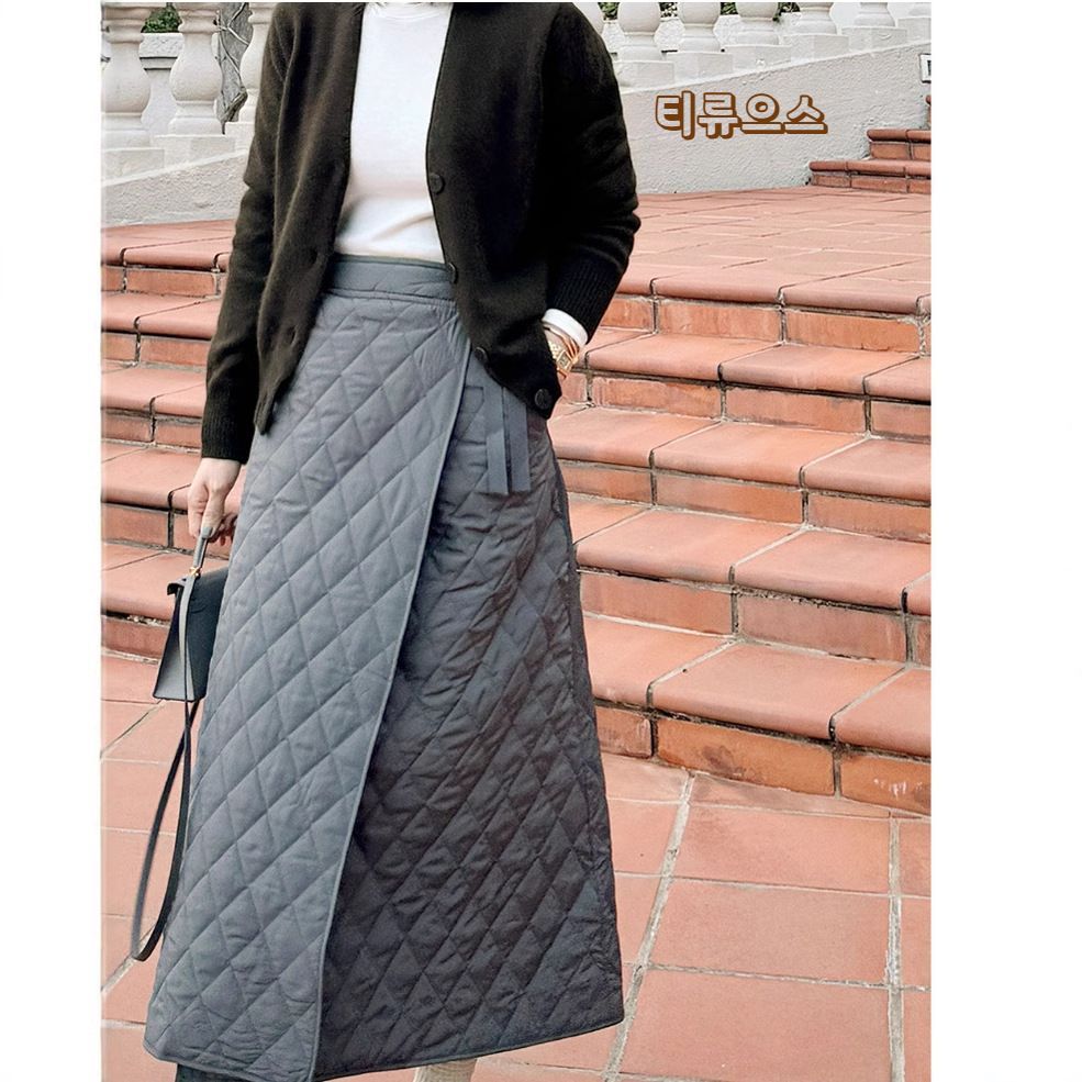 패딩 스커트 방한 랩 누빔 겨울 치마 롱스커트 체크무 프리사이즈 하츄핑 티류으스