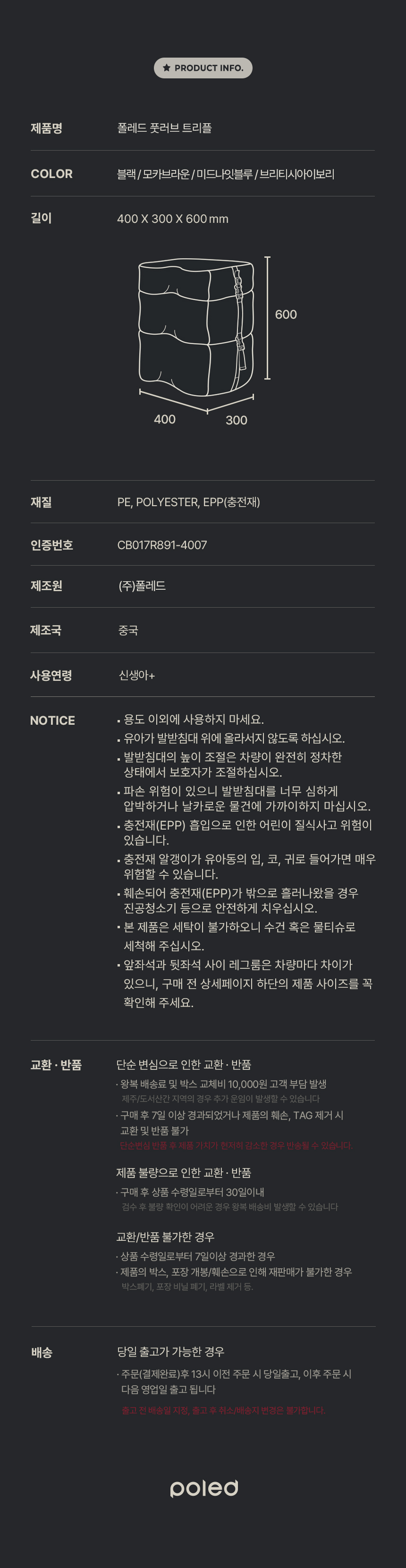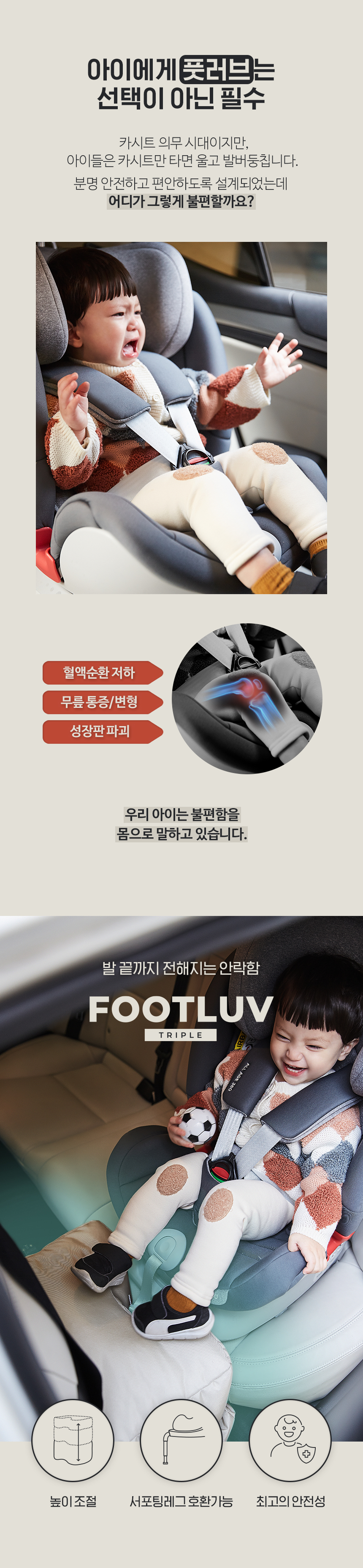 폴레드 풋러브 카시트 3단 발 받침대 발판 쿠션 디딤대