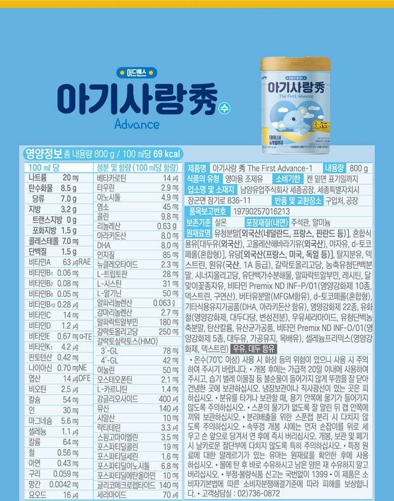 남양유업 아기사랑수 1단계 800g X 3캔