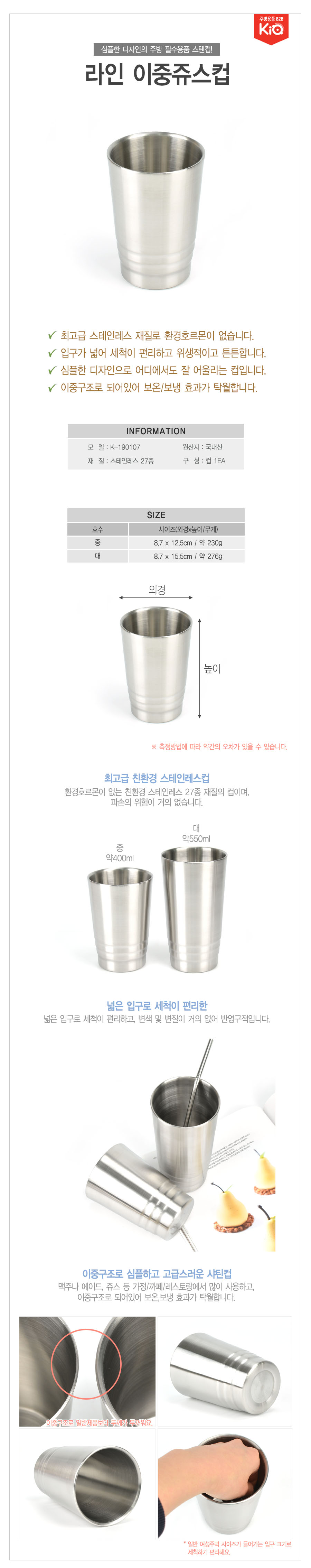 라인 이중 쥬스컵 스텐컵 550ml 물컵 보온 보냉컵 라인 이중 쥬스컵 스텐컵 550ml