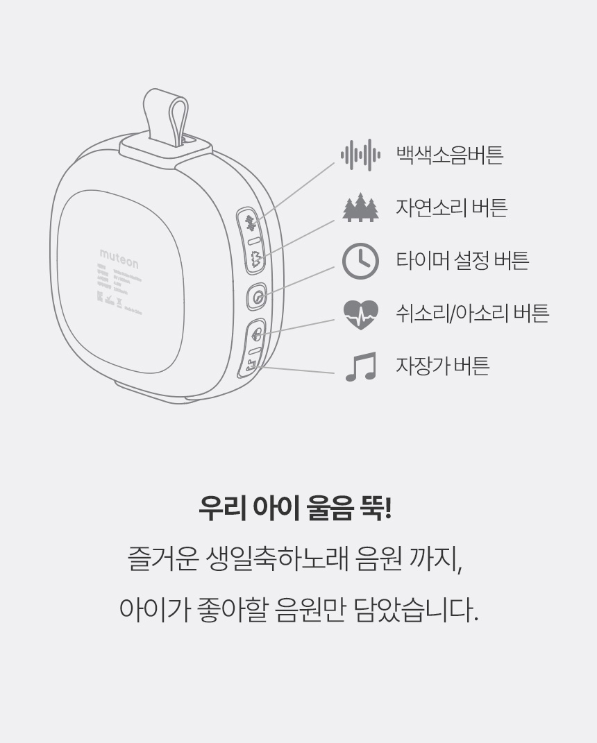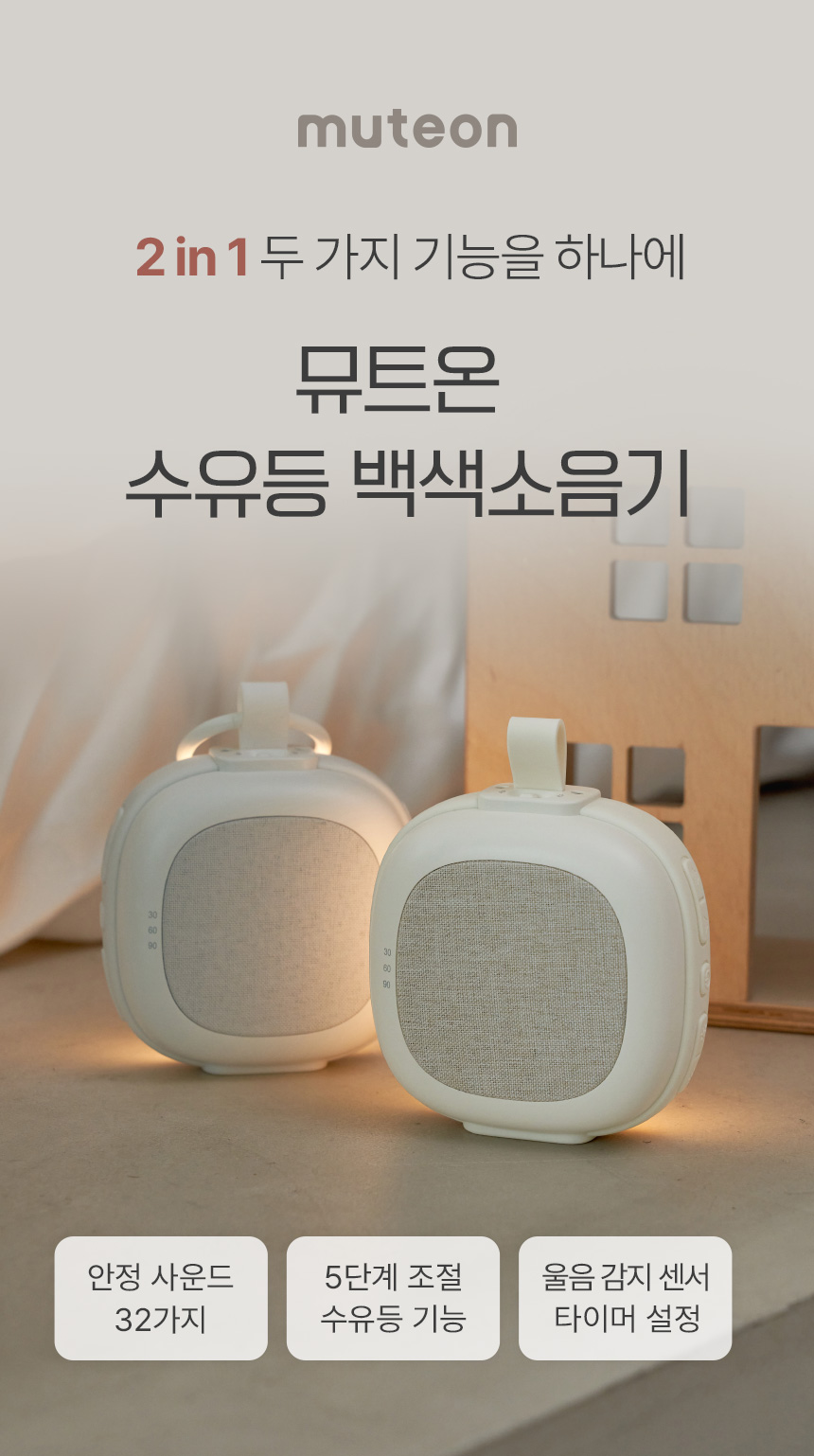 (뮤트온)울음감지센서 아기 백색소음기 수면교육 수유등