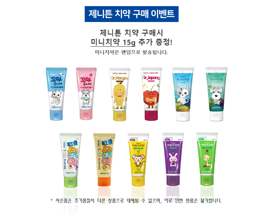 제니튼 닥터제니 클라이네 어린이 치약 초등학생 치약4개+미니4개