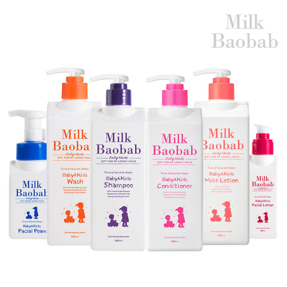 ∨ 온가족 안심사용 스킨케어 ∨ 한국/ 피부자극테스트 완료! Milk Baobab Baby&Kids Shampoo 500ml 설페이트, 피이지, 실리콘 無첨가 베이비&키즈 샴푸의 탄생