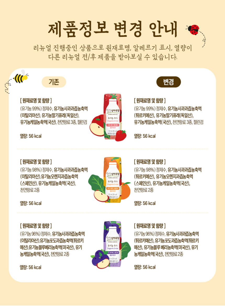 상하목장 유기농 주스 사과 오렌지 케일 125ml x 24팩