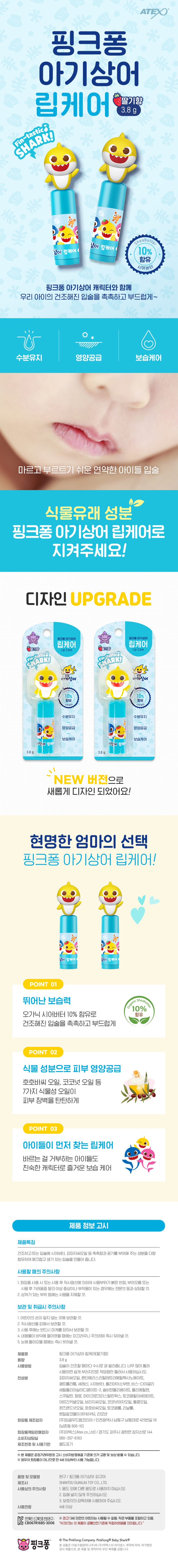 핑크퐁 아기상어 립케어 3.8g (딸기향) 4개 캐릭터립밤 입술케어