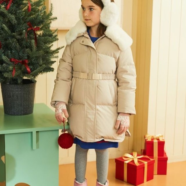 고급스러운 퍼카라 디테일로 포인트를 준 구스다운 점퍼.