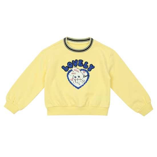상세설명-상큼한 레몬옐로우 컬러의 맨투맨으로 가슴에 귀여운토끼부클직자수가 포인트인 아이템입니다.