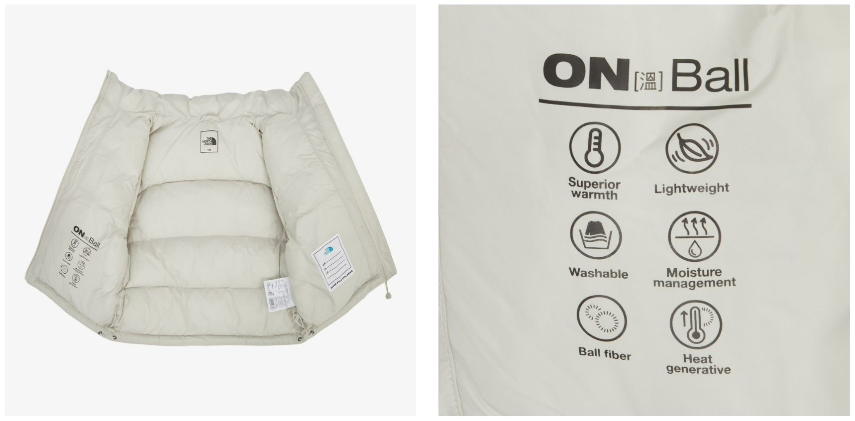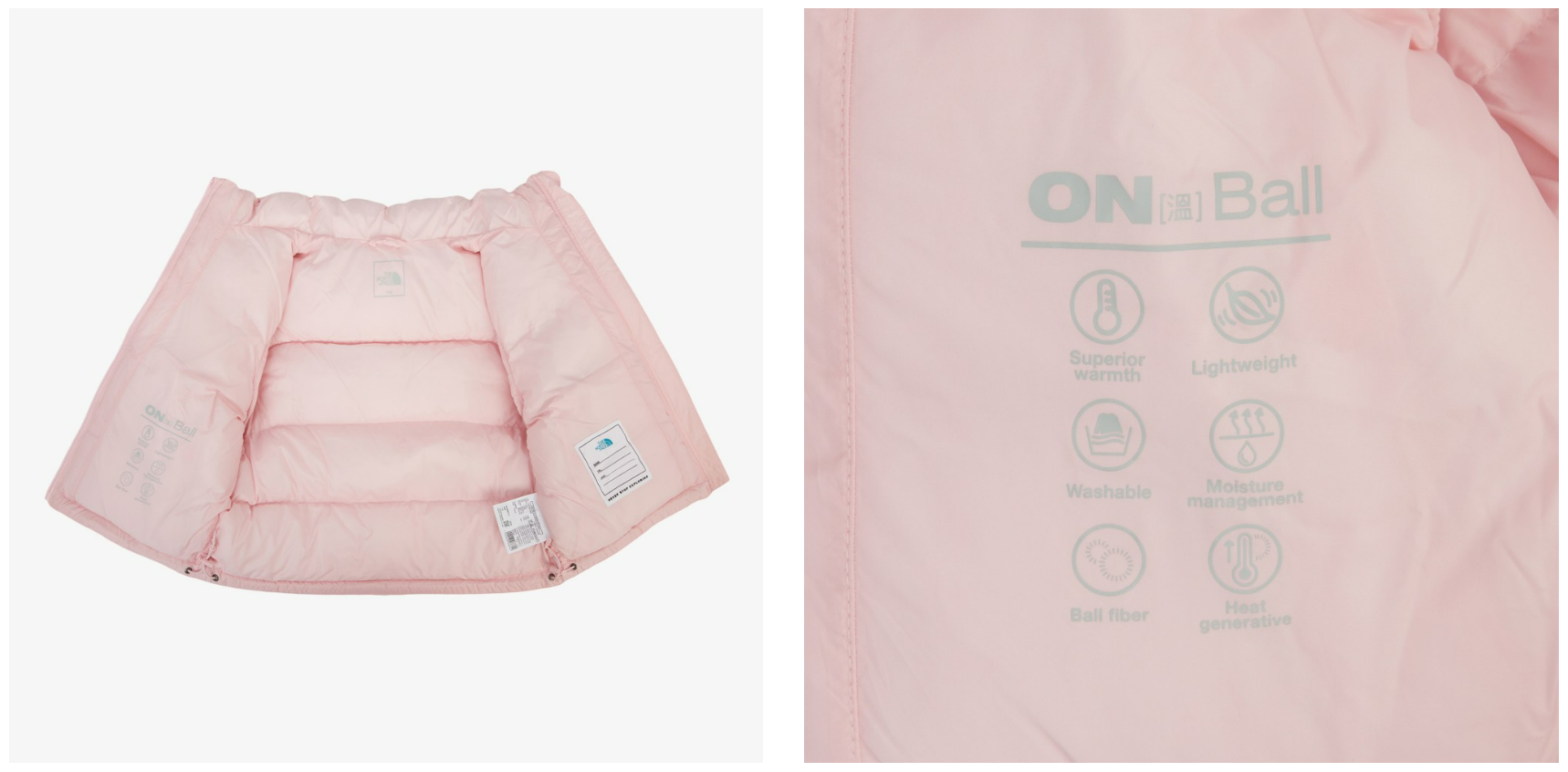 ON BALL 충전재를 사용하여 가벼우면서도 볼륨감이 좋고 보온성이 우수합니다.
