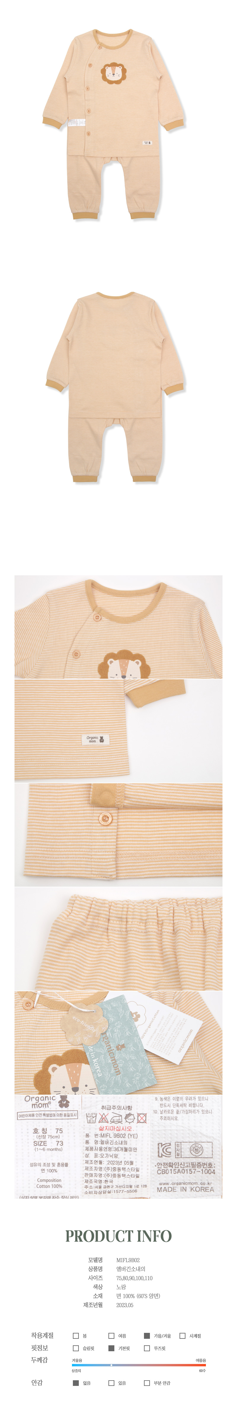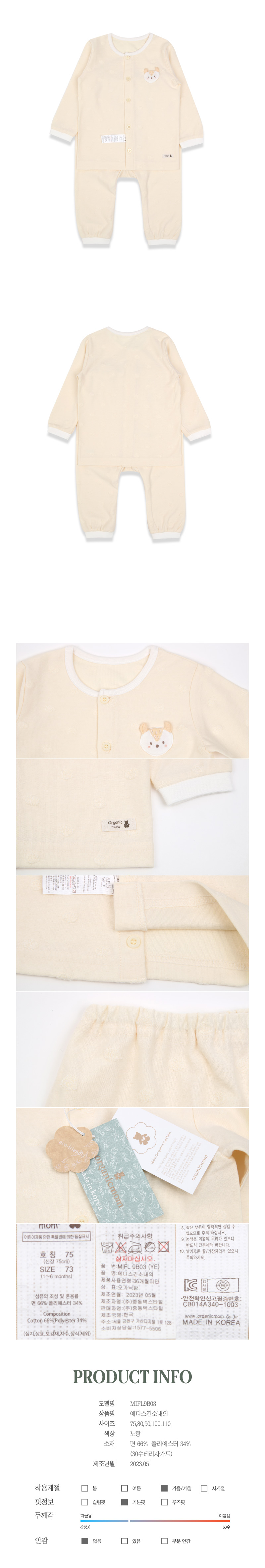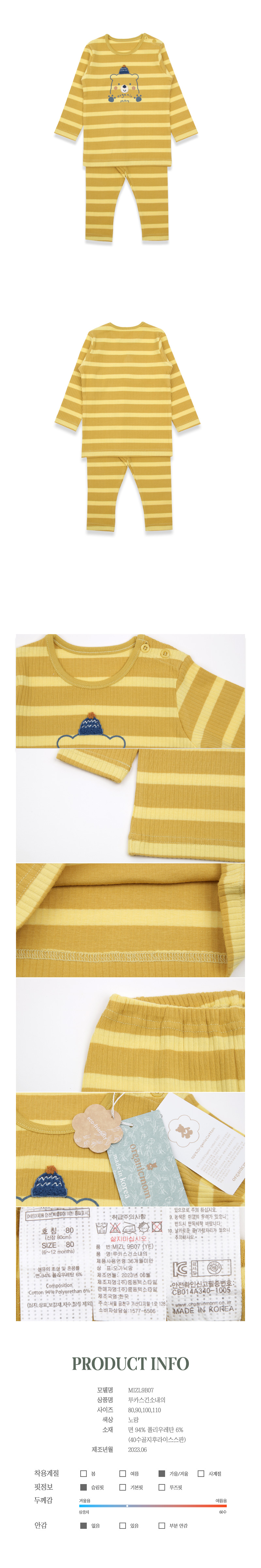 브드러운오가닉원단으로된 실내상하내의 입니다.