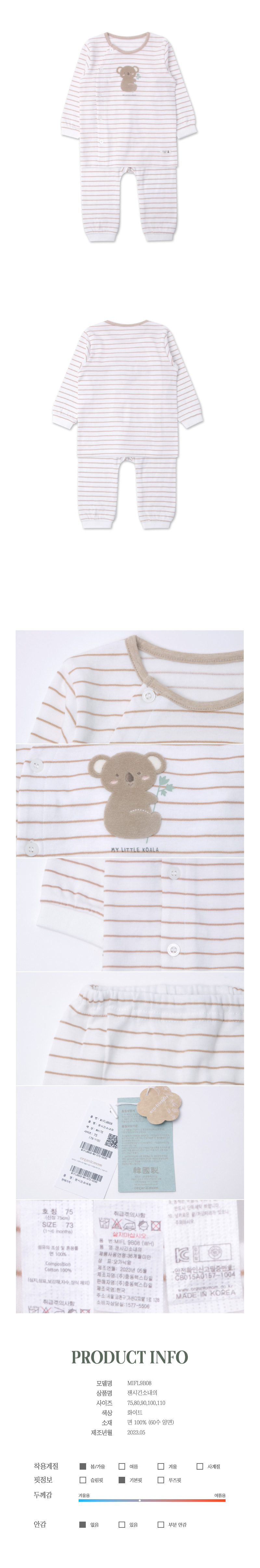 트라이프바탕에 코알라가 아주귀여운상하내의입니다.
