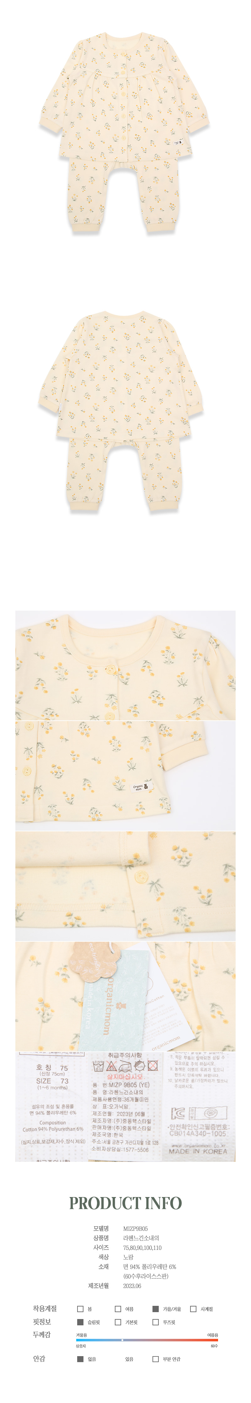 잔잔한 프린트의 귀여운실내상하복입니다 ,원단은 오가닉으로아주부드럽습니다.