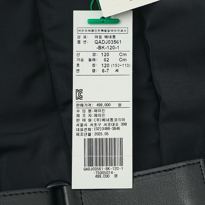 - 본 상품에 대한 사이즈 및 자세한 상품문의는 갤러리아백화점(센터점) 6F 베네통키즈 ☏(041) 412-9671 으로 연락주십시오.