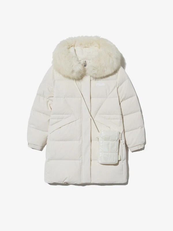 퍼 탈착이 가능한 프리미엄 여아 다운입니다. 아이들이 가장 자주 맬 수 있는 핸드폰 가방 사이즈의 크로스백이 세트로 구성 되는 것이 포인트입니다. 사이드 지퍼 디테일이 있어, 앞쪽 지퍼를 다 잠근 상태에서도 편하게 활동할 수 있습니다. RDS를 준수한 구스 다운을 사용하였습니다.