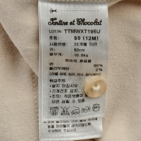 세탁방법 및 취급시 주의사항 : 삶지 마십시오. 기계건조 금지. 주의! 작은 부품이 탈락되면 삼킬 수 있음.