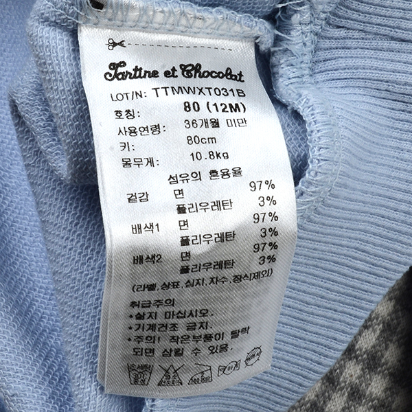 세탁방법 및 취급시 주의사항 : 삶지 마십시오. 기계건조 금지. 주의! 작은 부품이 탈락되면 삼킬 수 있음.