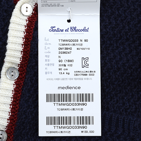 품명 및 모델명 : [쇼콜라]TC)BR퍼티니트가디건(TTMWGD033)