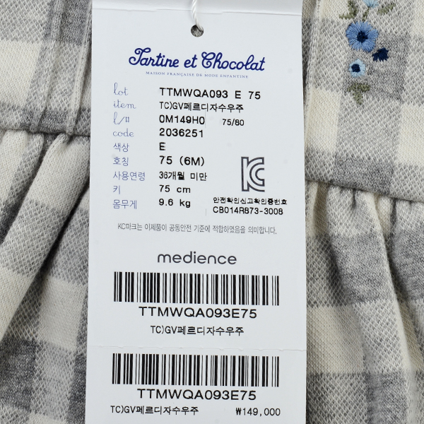 세탁방법 및 취급시 주의사항 : 삶지 마십시오. 기계건조 금지. 주의! 작은 부품이 탈락되면 삼킬 수 있음.