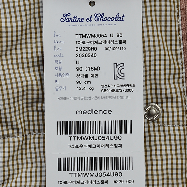 품명 및 모델명 : [쇼콜라]TC)BL우디체크페더리스점퍼(TTMWMJ054)