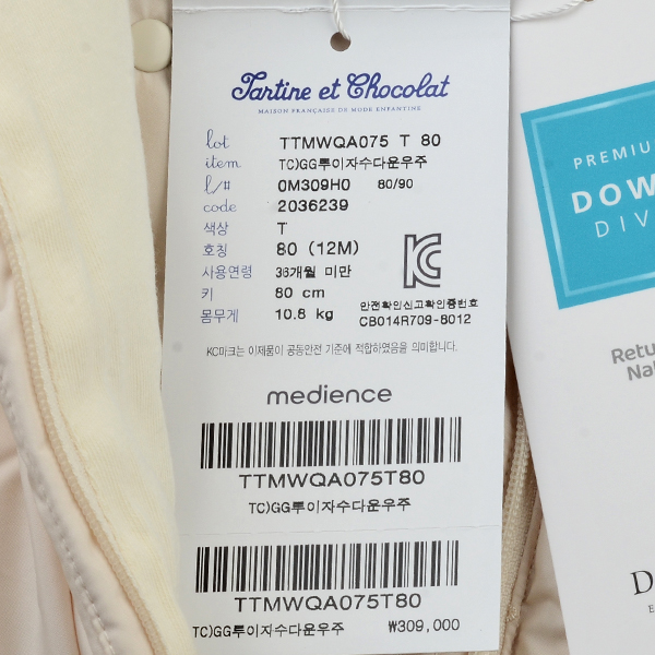 제품소재 : 겉감 폴리에스터 100 안감 1 면 100 안감2 폴리에스터 100충전재 우모 솜털 80 깃털 20 충전재 폴리에스터 100트리밍 폴리에스터 100