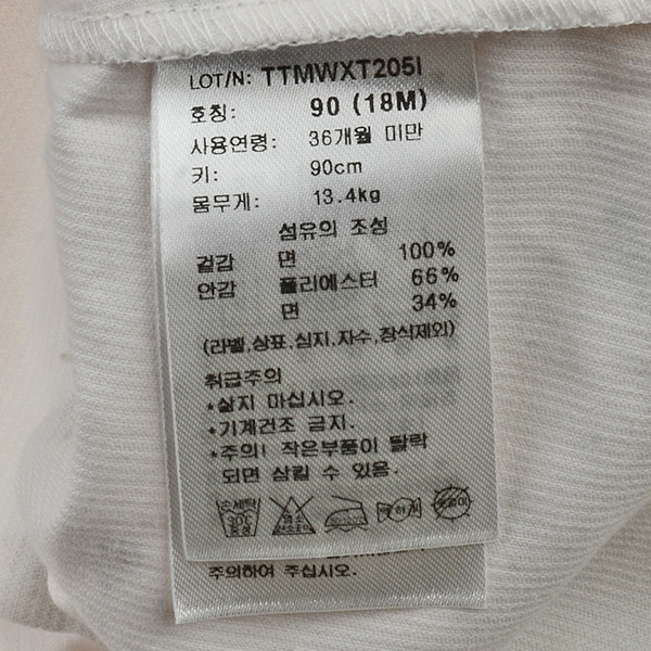 세탁방법 및 취급시 주의사항 : 삶지 마십시오. 기계건조 금지. 주의! 작은 부품이 탈락되면 삼킬 수 있음.