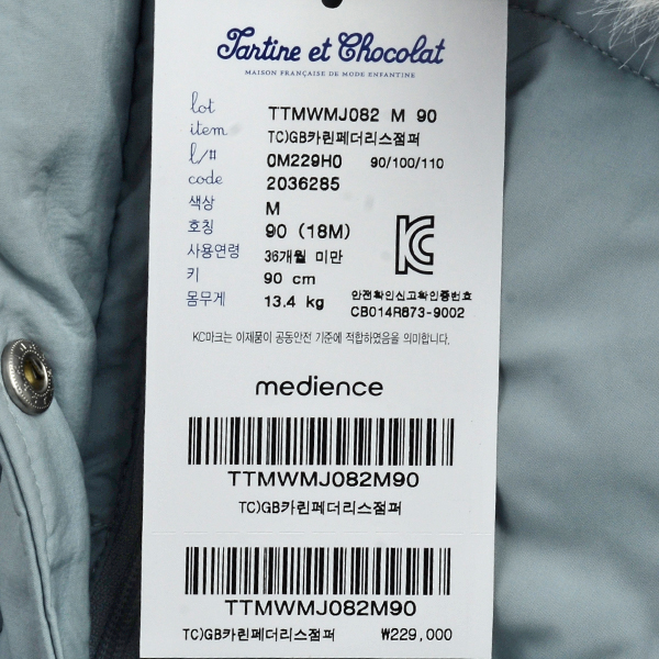 품명 및 모델명 : [쇼콜라]TC)GB카린페더리스점퍼(TTMWMJ082)