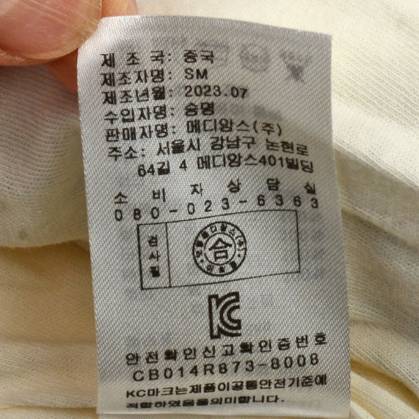 제품소재 : 겉감 폴리에스터 100 배색 폴리에스터 100 안감 면 100 충전재 폴리에스터 100