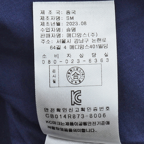 제품소재 : 겉감 폴리에스터 100배색 면 100