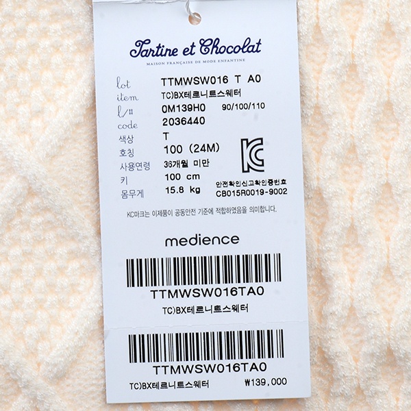 품명 및 모델명 : 외출복)테르니트스웨터