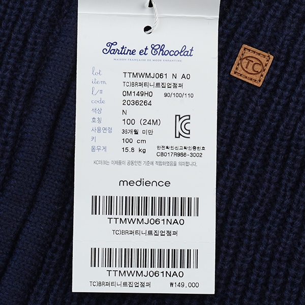 품명 및 모델명 : 외출복)퍼티니트집업점퍼